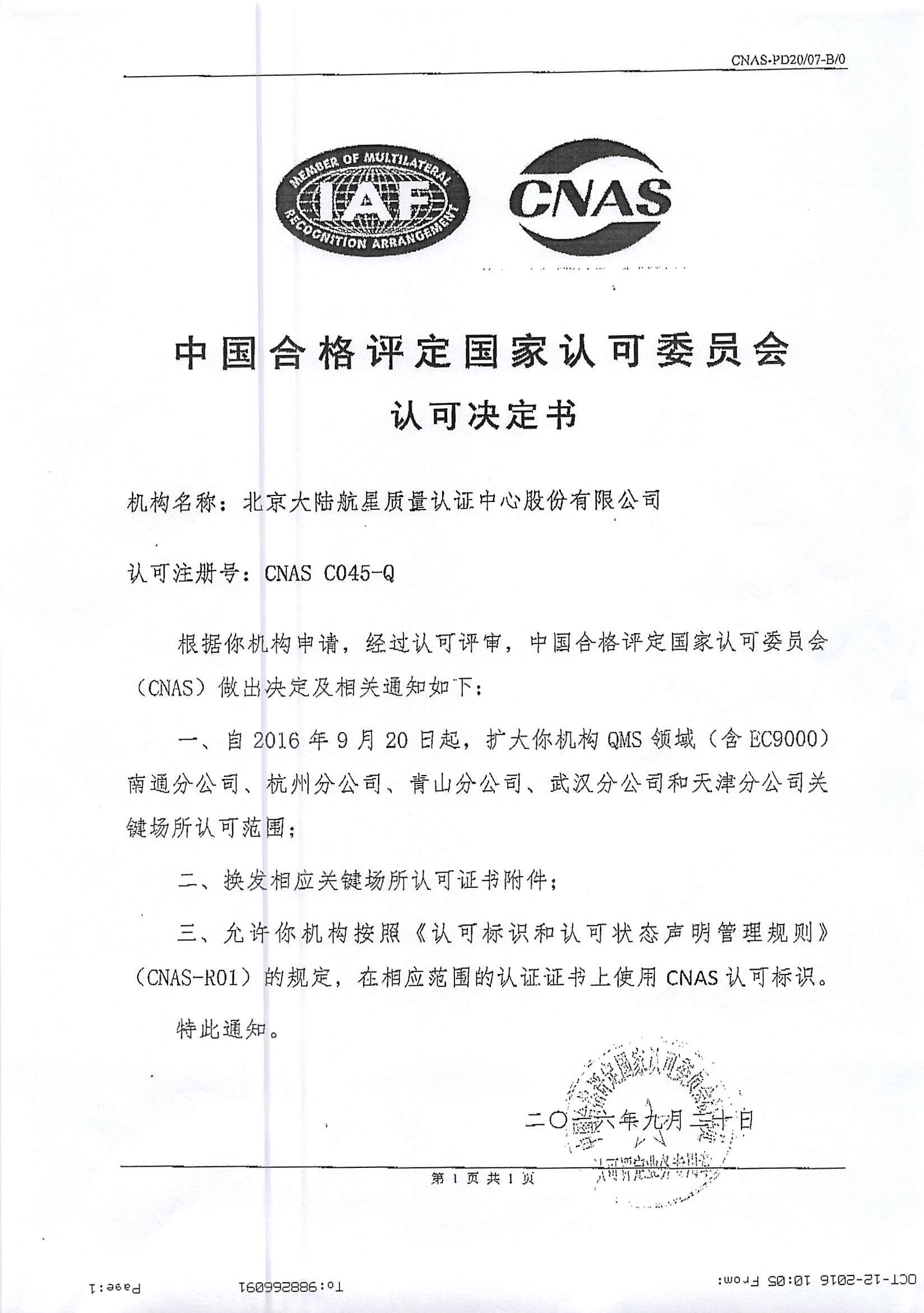 在管理層團(tuán)隊(duì)的引領(lǐng)下,經(jīng)總部各部門(mén)、各分支機(jī)構(gòu)及相關(guān)人員的共同努力,北京大陸航星質(zhì)量認(rèn)證中心股份有限公司(以下簡(jiǎn)稱HXQC),順利通過(guò)中國(guó)合格評(píng)定國(guó)家認(rèn)可委員會(huì)(CNAS),對(duì)我公司進(jìn)行的例行監(jiān)督、轉(zhuǎn)換及擴(kuò)大評(píng)審。保持了QMS(含EC9000)、EMS、OHSMS和FSMS認(rèn)證領(lǐng)域的認(rèn)可資格,并通過(guò)了CNAS-CC01:2015和CNAS-SC15:2015轉(zhuǎn)換評(píng)審,同時(shí)擴(kuò)大了我公司QMS(含EC9000)認(rèn)證領(lǐng)域南通分公司、杭州分公司、青山分公司、武漢分公司和天津分公司5個(gè)關(guān)鍵場(chǎng)所。