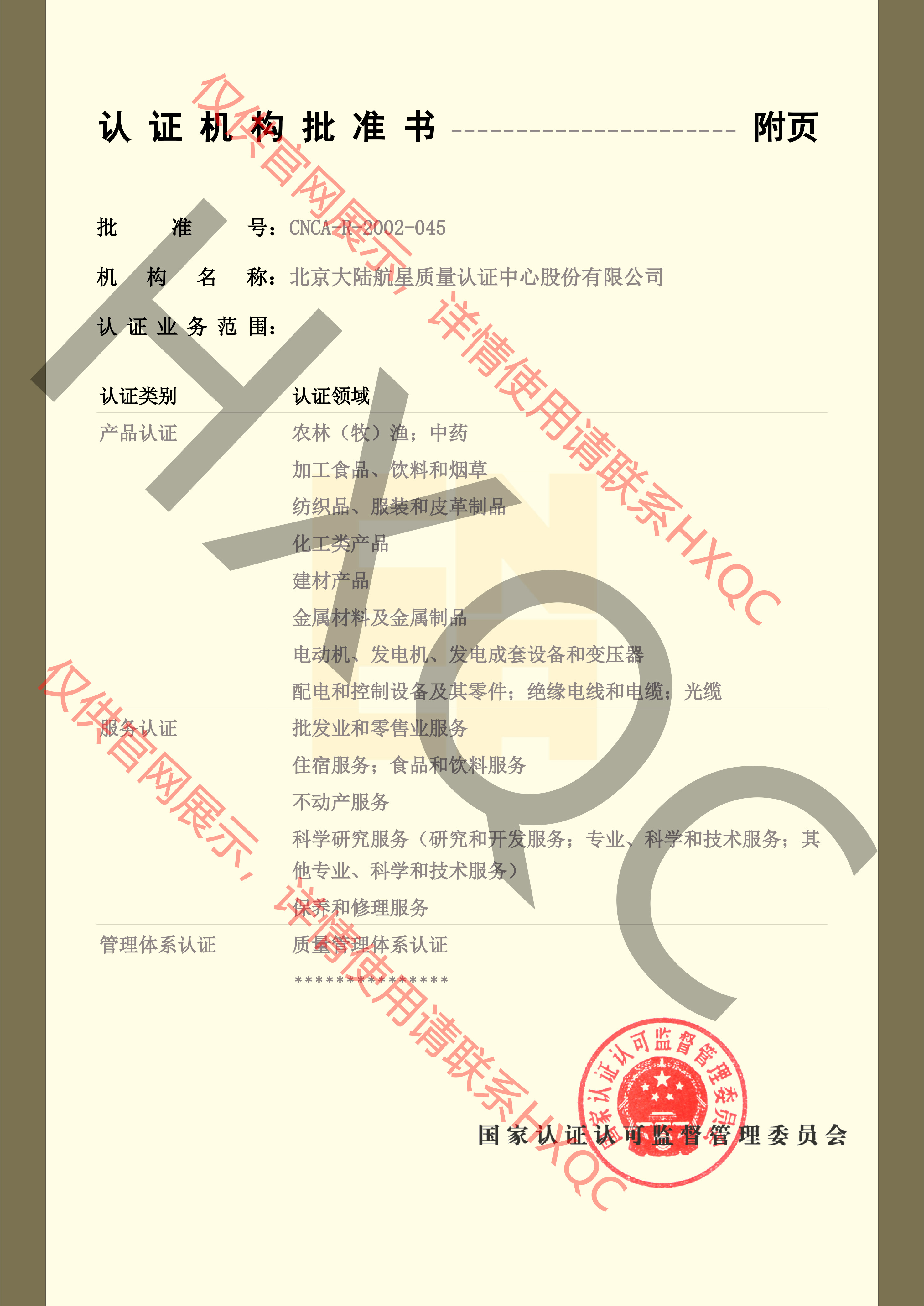認(rèn)證機構(gòu)批準(zhǔn)書