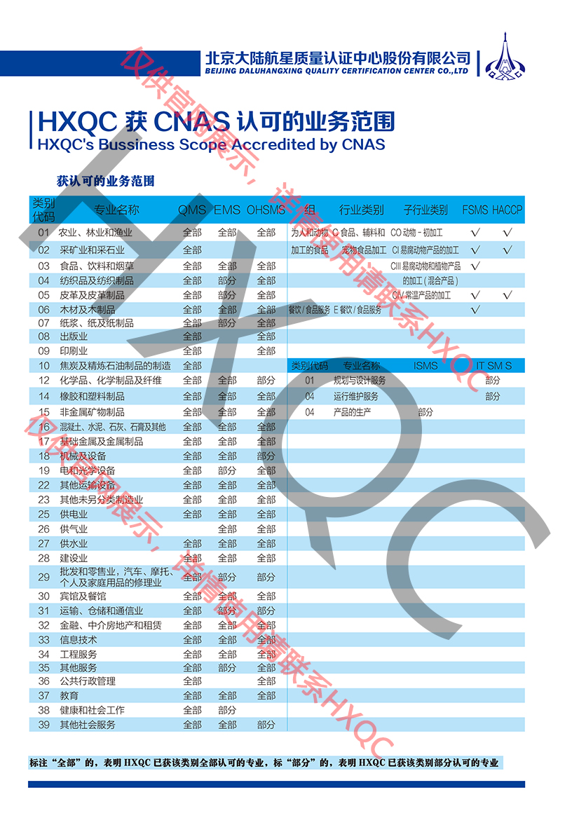 JAS-ANZ認(rèn)可業(yè)務(wù)明細