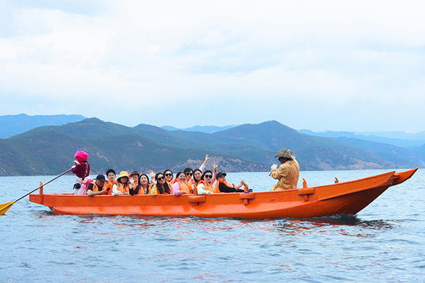 瀘沽湖宛如群山中的一顆藍寶石,瀘沽湖畔,豬槽船悠悠地飄蕩,摩梭人用他們自己的語言和故事,講述著女兒國的浪漫。坐在船上真切感受到湖水的清涼和微風的拂面,蕩漾中時間仿佛變得緩慢而寧靜,你可以放下心中的紛擾,沉浸在這片美麗的自然風光中,讓自己的心靈得到凈化。