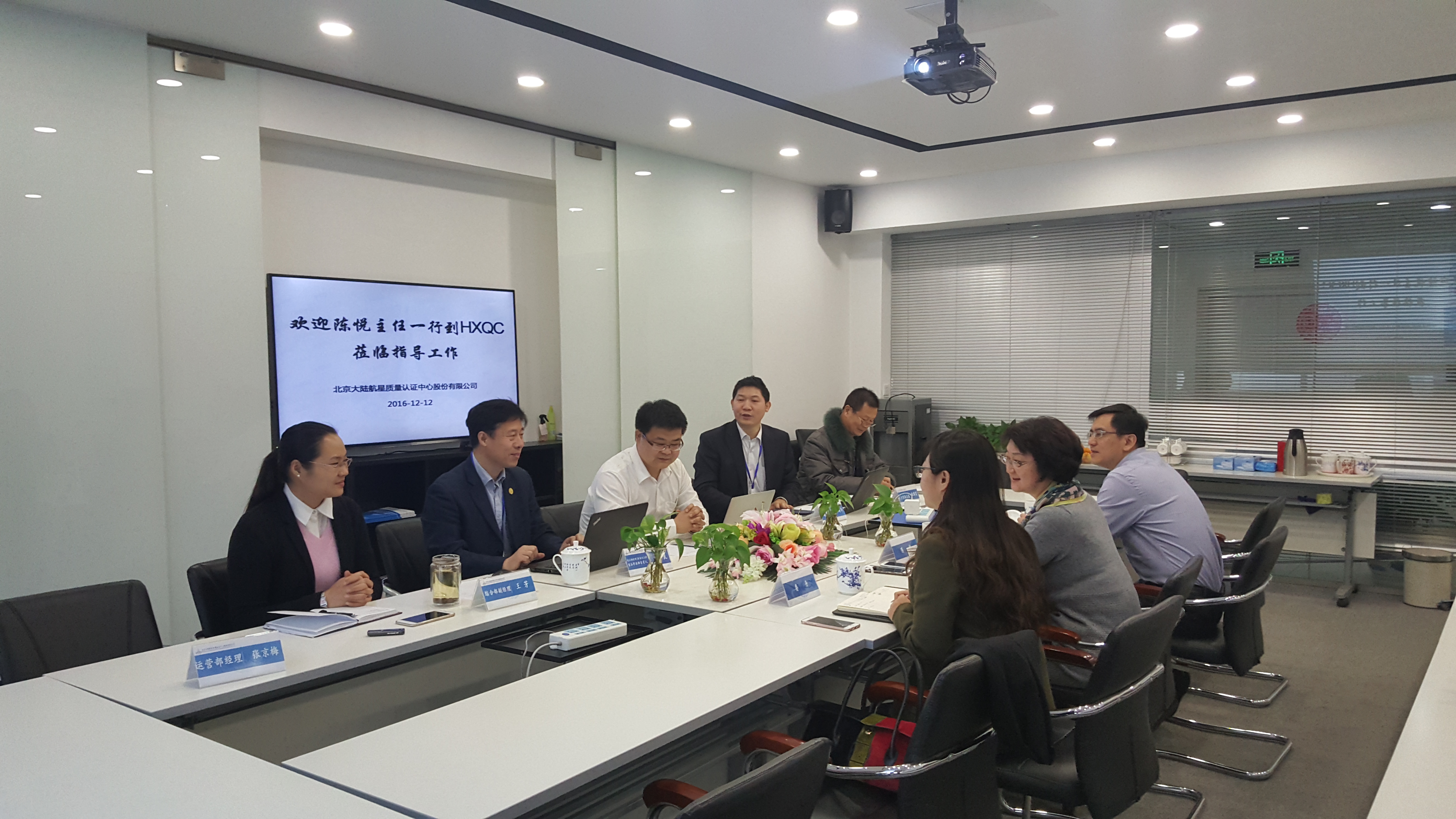 2016年12月12日中國(guó)國(guó)家認(rèn)證認(rèn)可監(jiān)督管理委員會(huì)科技與標(biāo)準(zhǔn)管理部(以下簡(jiǎn)稱認(rèn)監(jiān)委科標(biāo)部)副主任陳悅、科技處王曉冬處長(zhǎng)、婁丹副調(diào)研員一行三人到HXQC調(diào)研。HXQC總經(jīng)理鄭宇兵、副總經(jīng)理韓海華、人力資源總監(jiān)陸錦富、技術(shù)委員會(huì)主任兼技術(shù)部經(jīng)理趙忠良等中高層領(lǐng)導(dǎo)參加了調(diào)研會(huì)議。