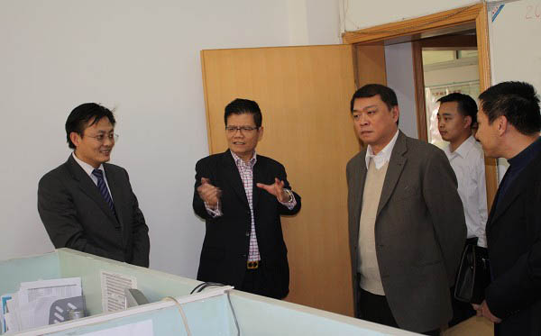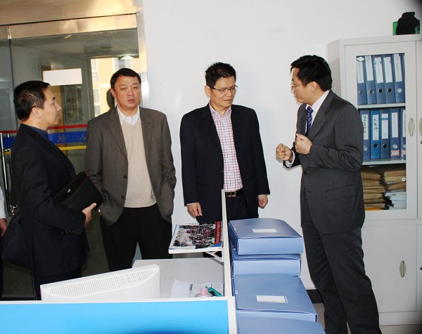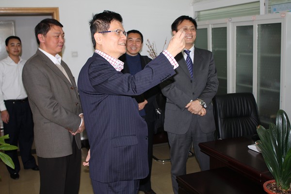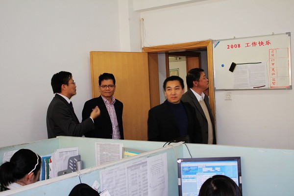 黃博愛(ài)董事長(zhǎng)、江明首席執(zhí)行長(zhǎng)在陸益勤總裁和總裁助理孫敏的陪同下,饒有興致的參觀了各部門(mén)的工作。