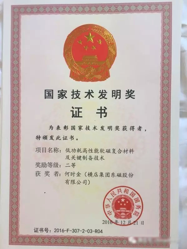 1月9號(hào),北京大陸航星質(zhì)量認(rèn)證中心股份有限公司客戶橫店集團(tuán)東磁股份有限公司董事長(zhǎng)何時(shí)金與浙江大學(xué)團(tuán)隊(duì)共同發(fā)明的“低功耗高性能軟磁復(fù)合材料及關(guān)鍵制備技術(shù)”,在人民大會(huì)堂舉行的一年一度國(guó)家科學(xué)技術(shù)獎(jiǎng)勵(lì)大會(huì)上獲得國(guó)家技術(shù)發(fā)明獎(jiǎng)二等獎(jiǎng),受到表彰。