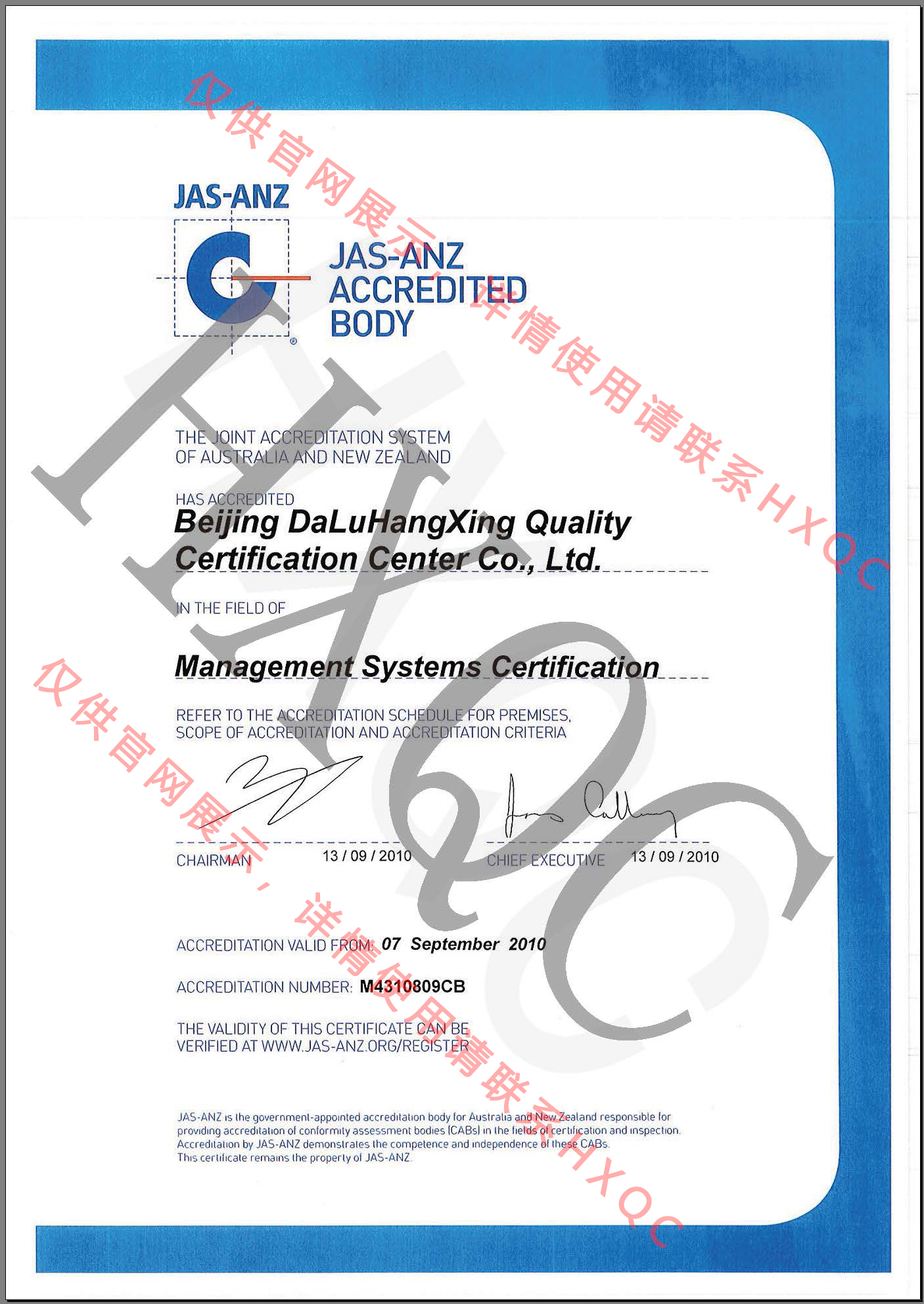 JAS-ANZ認(rèn)可證書