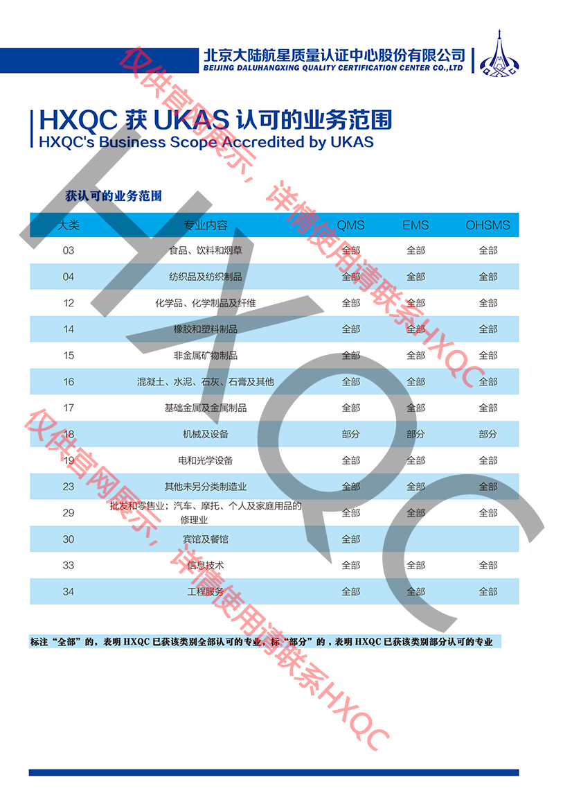 UKAS認(rèn)可業(yè)務(wù)明細(xì)